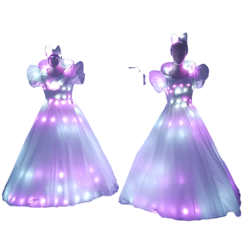 LED Luminous Performance Wear for Adults Girls 1piece White Snow Dress Rainbow Stage Cosplay for Party Costume Performance
